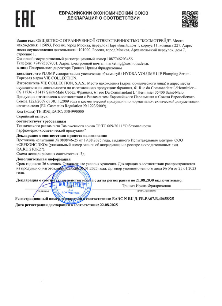 Косметика исключительно оригинальная. Подлинность подтверждается сертификатами соответствия.